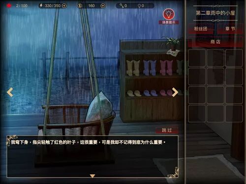 在《落雨落叶》中,玩家需要去寻找不同的道具和线索,每个道具与线索都有所用途,来解开隐藏在每个章节里的谜题与机关。每次进行探索与动作都会消耗掉游戏中的体力(这是游戏中的逼氪点之一),玩家要审慎的决定每一个步骤,才不会白白消耗掉过多的体力。