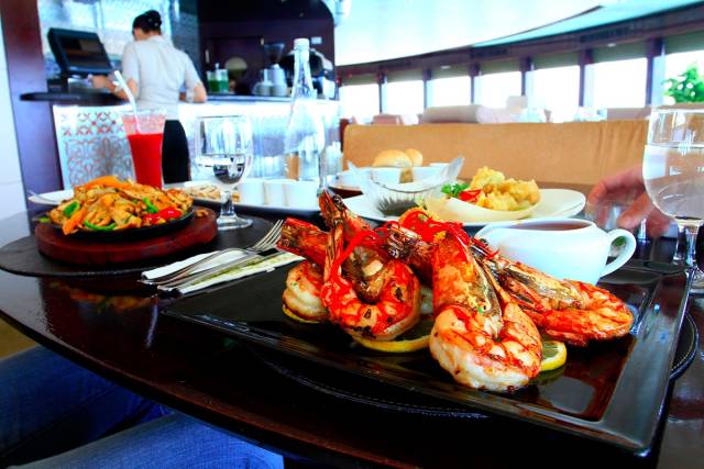 帆船有海底餐厅Al Mahara、顶层餐厅Al Muntaha、河畔餐厅Bab Al Yam和亚洲餐厅Junsui等,其中最有名的是前两个,价格约略在1000-2000人民币/人左右。