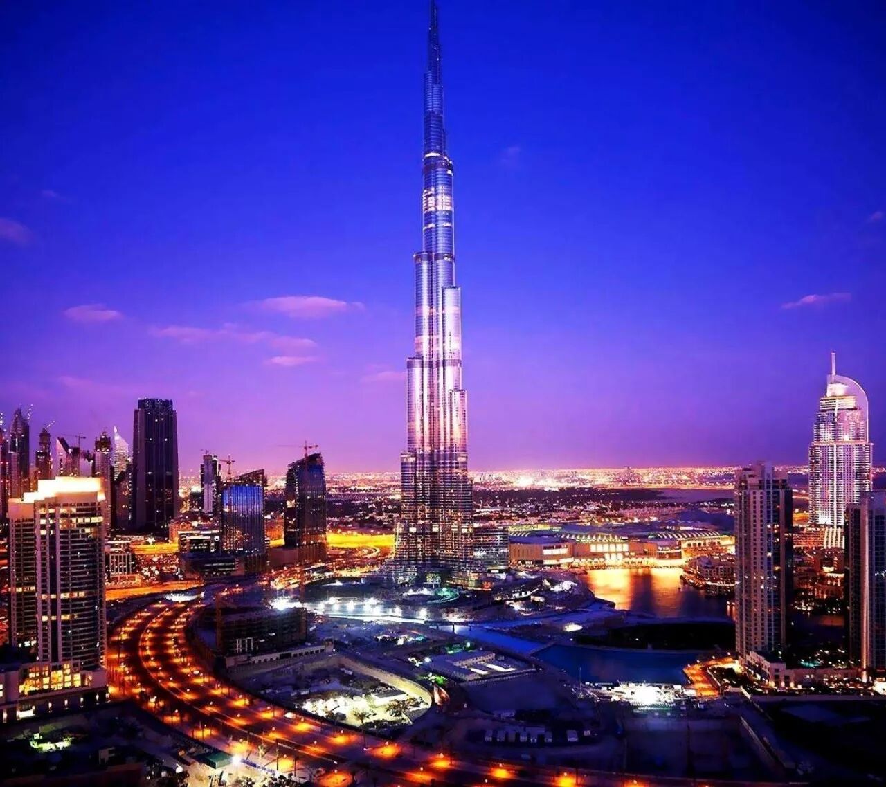 哈利法塔——世界最高的摩天大楼,位于阿拉伯联合酋长国迪拜,有162层,总高828米。2010年建成,但建此摩天大厦只花了6年时间,1万多名工人平均每3天建成一层,速度惊人。