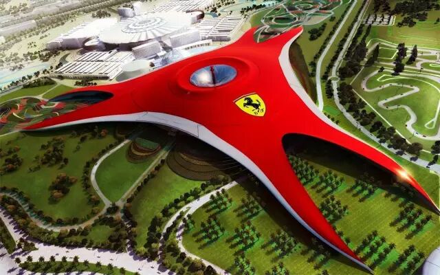 这是一个独特的多感官主题公园,同时也是全球最大的室内主题乐园。整个"法拉利世界"斥资400亿美元打造,坐落在亚斯岛开发区一个庞大的三角形红屋顶下,毗邻一级方程式阿布扎比站的赛道。
