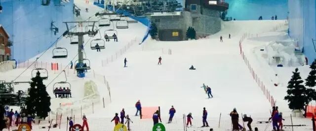 位于迪拜酋长国购物中心内的迪拜滑雪场滑雪是迄今为止全球最大的室内滑雪场之一,这座奇特的滑雪场分为“冰雪公园”和“滑雪道”两部分,耗资近3亿美元,面积相当于3个足球场,可容纳1500人同时滑雪。