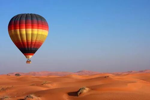 如果你实在无法接受太过刺激的跳伞,在阿布扎比有一项非常著名的沙漠观日出热气球飞行活动。