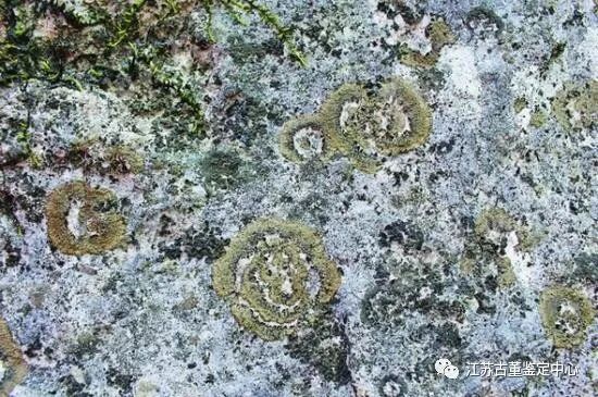 这块岩石被当地人称为“狮子岩”,立在村前小溪下游的左侧荒坡上,离小溪约有30米的距离。岩石裸露部分高3米左右,长5米左右,顶部宽不到2米。岩石面向山体的一面,有规律地生长着“花朵”,花形酷似梅花,细细一数,有20多朵。