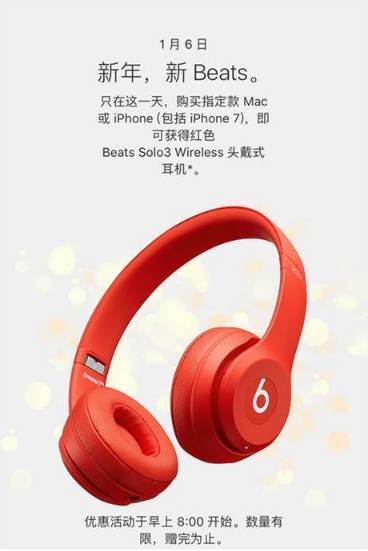 大家朋友圈这两天都有被“购买指定款 Mac 或 iPhone (包括 iPhone 7),即可获得红色 Beats Solo3 Wireless 头戴式耳机”的消息刷屏!苹果新年礼品日活动的优惠看起来的确不错,都在后悔早买了苹果,大家似乎更心仪耳机~