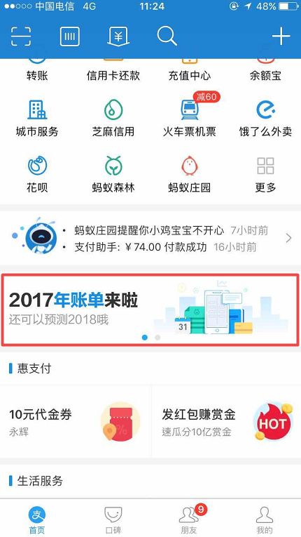 首页有“2017年账单来啦”,点击!