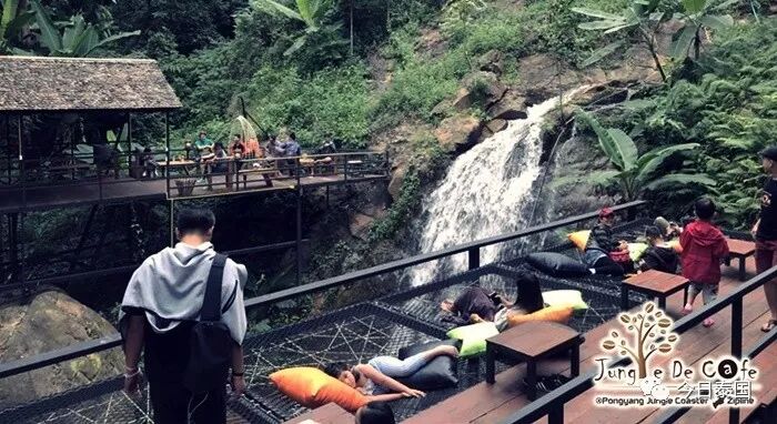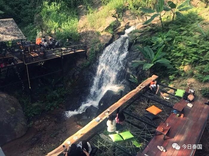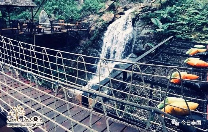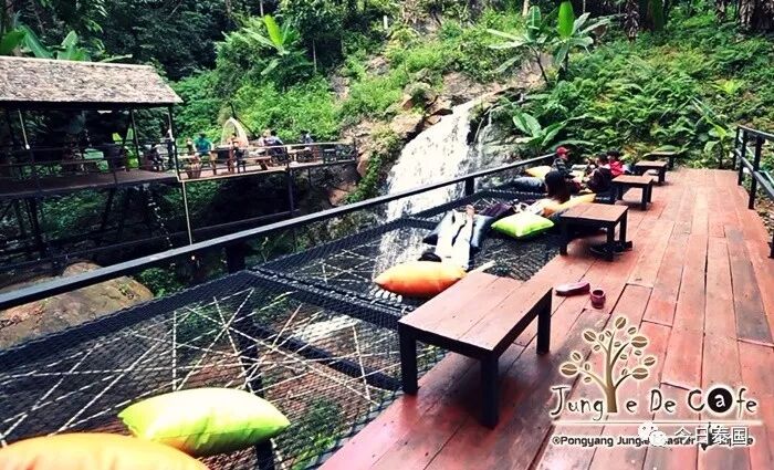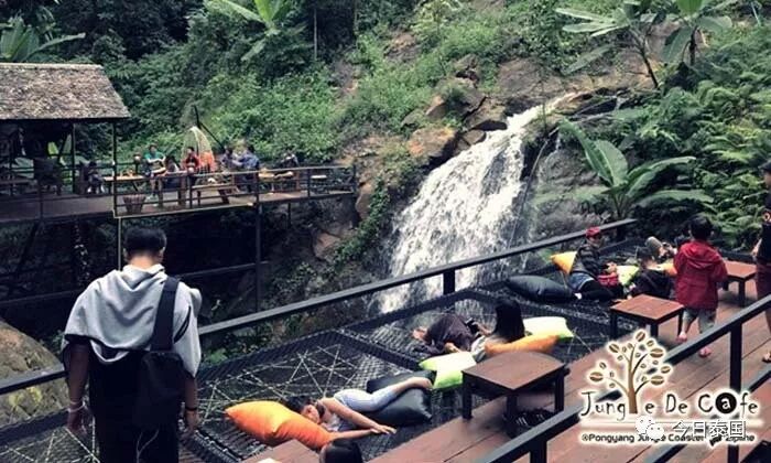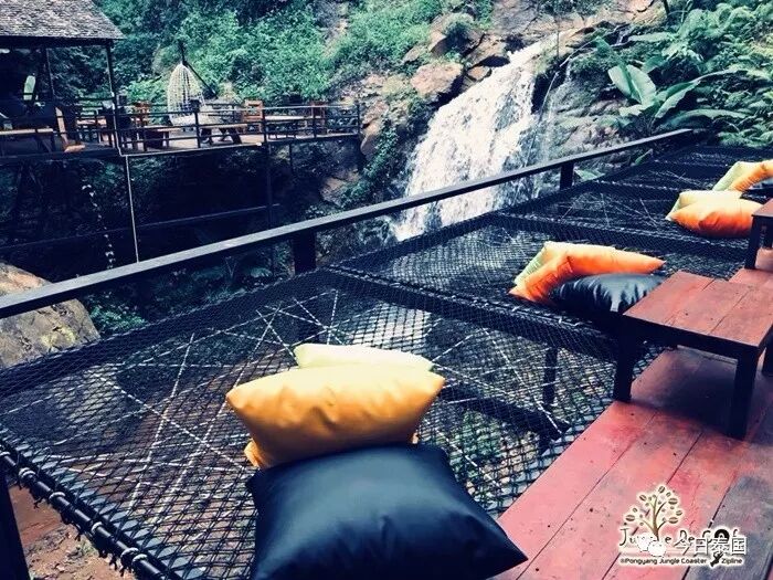【今日泰国讯】在清迈的小伙伴如果想要找一家有格调的咖啡店,那么Jungle De Café一定不能错过,因为这家咖啡店里有着别家咖啡店无法复制的天然瀑布。Jungle De Café利用了地理优势,在瀑布旁边建起了咖啡屋,还在高空装上了网床。光是想想就觉得很舒服,在绿油油的山间听着瀑布水声,微风吹过还会带来细细的小水珠,再喝上地道美味的咖啡,多么的凉爽和惬意呀!