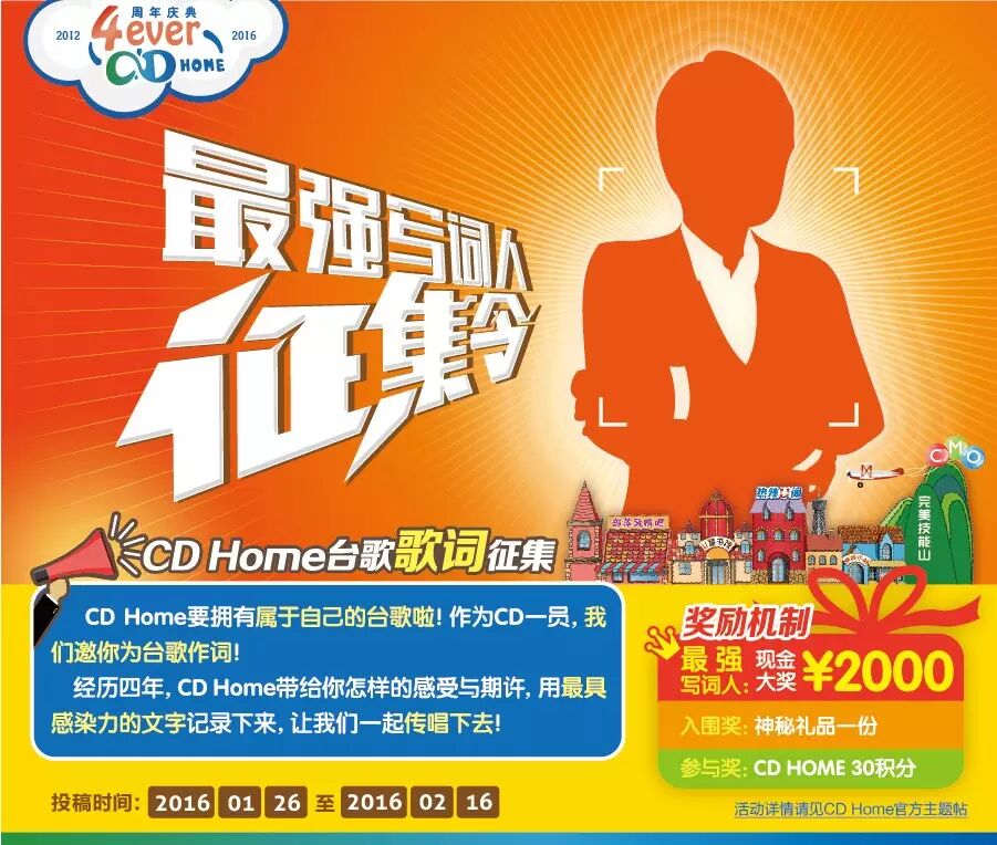CD Home 4周年之际,即将拥有我们自己的台歌!CD家的台歌岂容别人做主,歌词当然要自家人来填。
