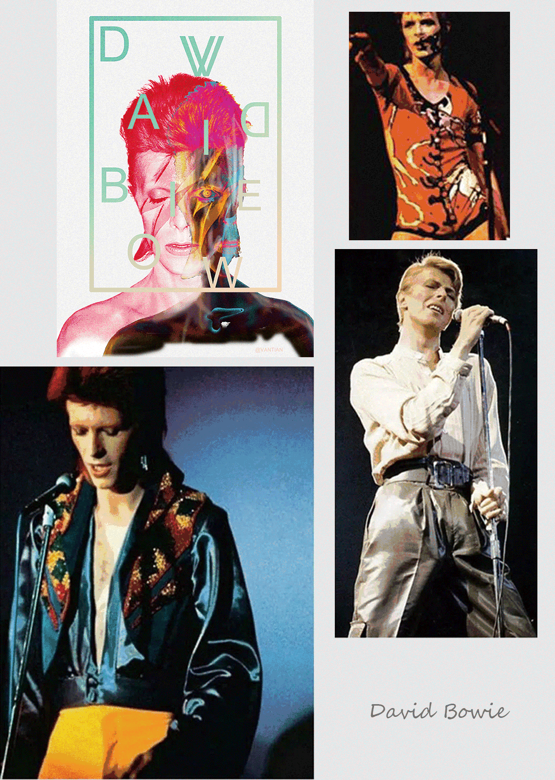说到迷幻摇滚(Glam Rock),总是绕不开David Bowie,这位魅力永恒、雌雄莫辩的迷幻摇滚教父特别擅长造势,在服装造型方面想象力和胆识超群。兴盛于1970年代的Glam Rock亦将金属质感的元素作为主要的反叛视觉符号。