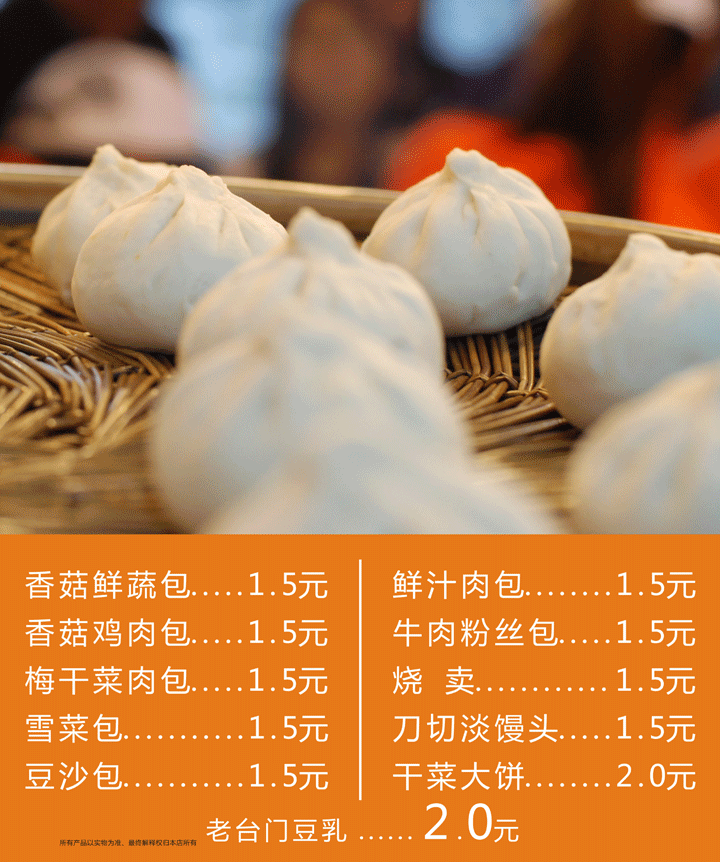 凡买三个包子即送豆乳一杯