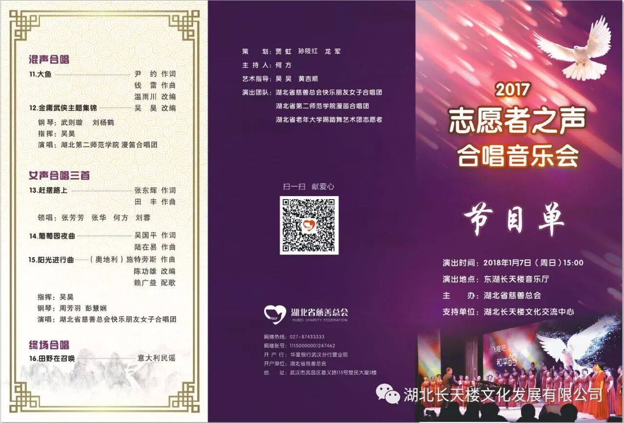 2018年1月7日15:00,由湖北省慈善总会主办、湖北长天楼文化交流中心大力支持的2018志愿者之声合唱音乐会在长天楼剧场温暖开唱。约300名爱心观众不惧严寒,到场观演,庆祝志愿者发声。