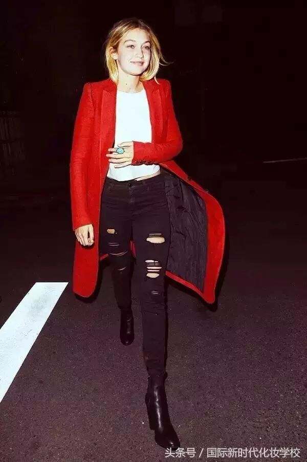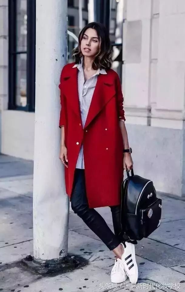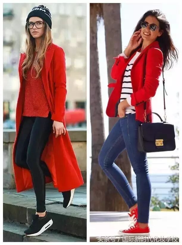 红色外套搭配紧身裤