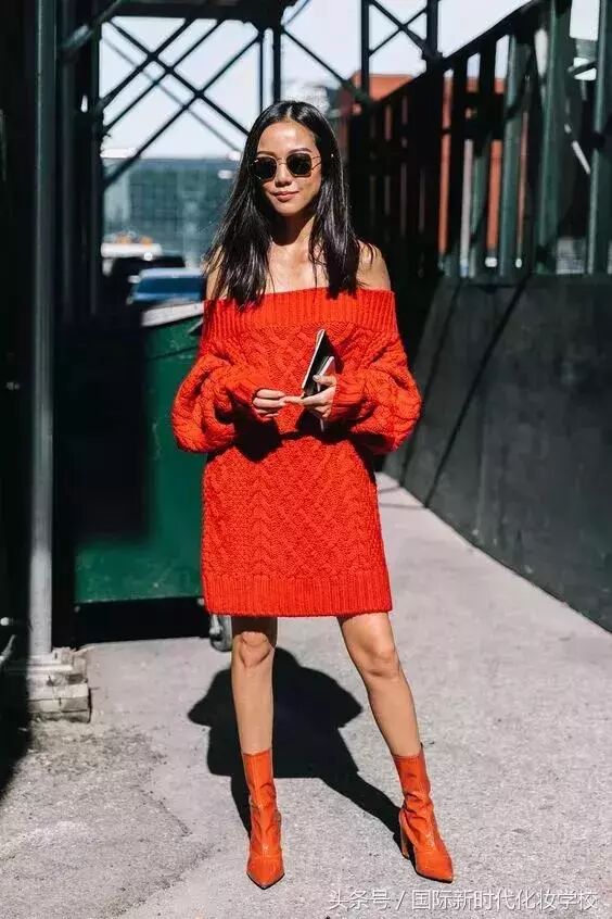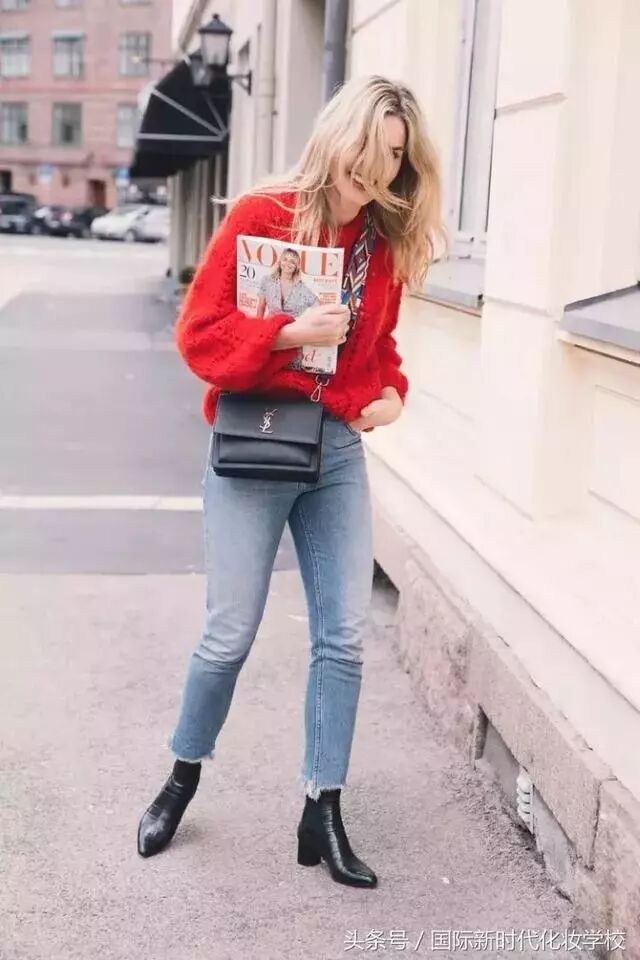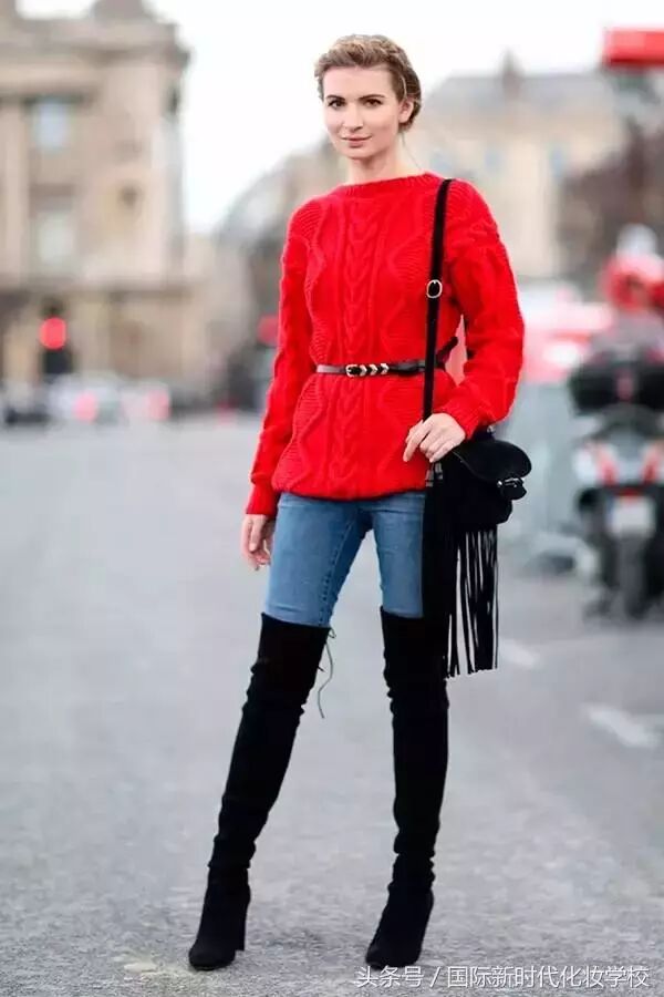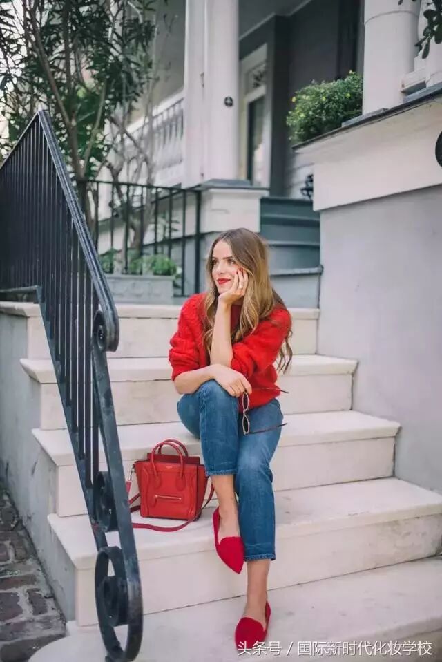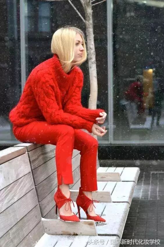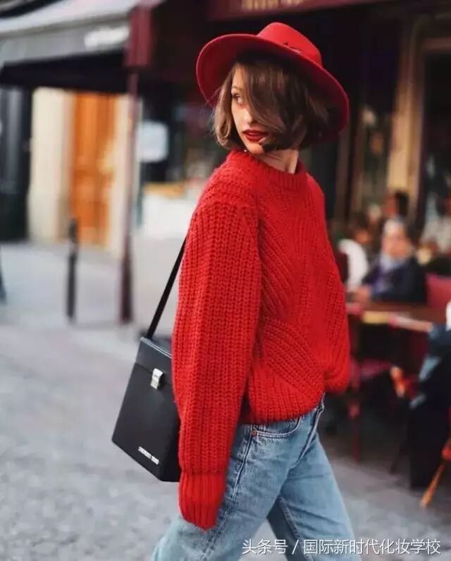 想要把红色毛衣穿出时尚感