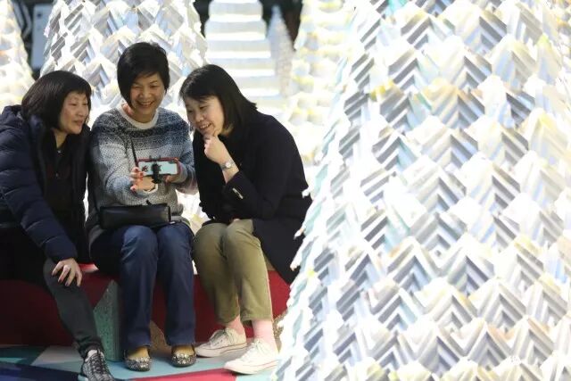 游人在晶莹剔透的银色森林里创造眼前美好,分享节日喜悦。