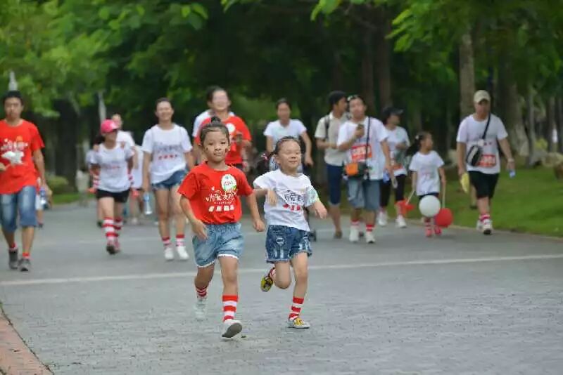 活动当天,参跑家庭需穿着统一的红色或者白色跑步T恤入场签到,领取矿泉水、小风车和扇子等小礼物。