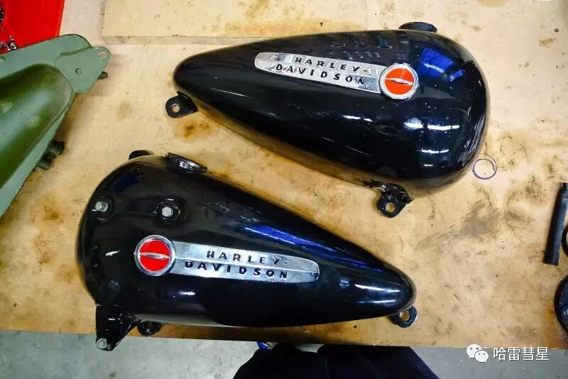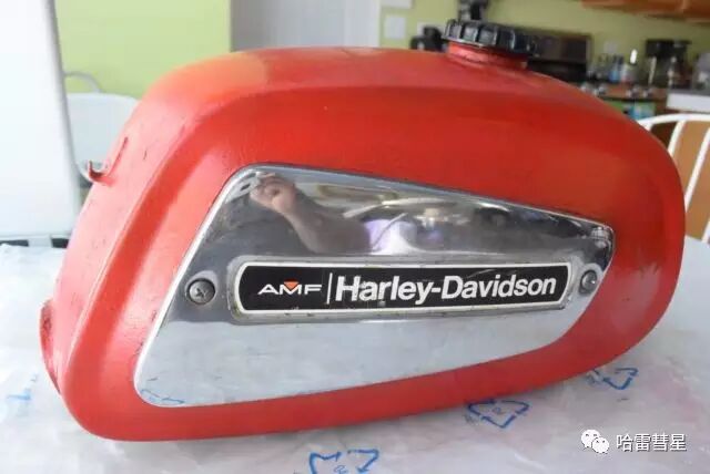 哈雷与AMF合并之后,油箱标识也多了个“AMF”。但在哈雷死忠粉看来,AMF这个保龄球商的logo似乎有点碍眼。