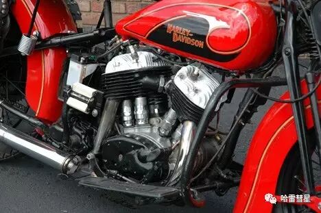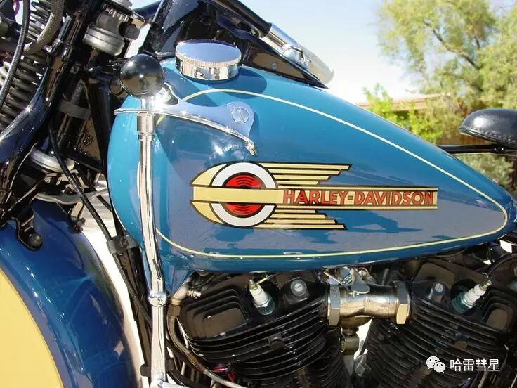 从这年开始,哈雷的油箱不再是方正的长条,而是被设计成沿用至今的独特水滴状。可以看见“H-D”的字母logo仍在使用。