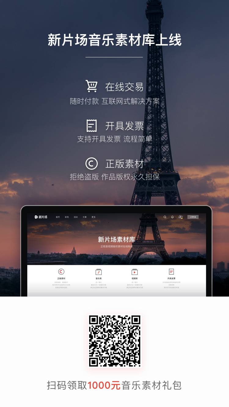 微信扫码并分享,就能领取价值1000元的限量音乐素材礼包。