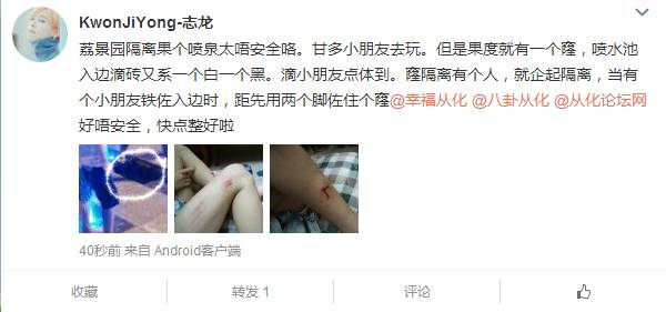 荔景园隔离果个喷泉太唔安全咯。甘多小朋友去玩。但是果度就有一个窿,喷水池入边滴砖又系一个白一个黑。滴小朋友点体到。窿隔离有个人,就企起隔离,当有个小朋友铁佐入边时,距先用两个脚佐住个窿@幸福从化 @八卦从化 @从化论坛网 好唔安全,快点整好啦.