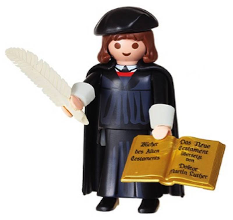 5月24日,柏林的勃兰登堡门为他点亮,奥巴马在这里为马丁·路德发起500周年发表纪念演讲。这是今年德国100个城市1000场庆祝活动的第一个高潮。数不胜数的新书和展览陆续发布。玩具厂商“摩比小子”专门为路德发布了一款精巧的小塑像。