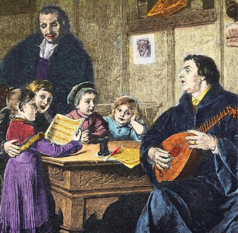 马丁·路德谱写的配乐铿锵有力,节奏适合群众语言,便于真实感受,因为他本身就是一位音乐家。1501年,马丁·路德进入埃尔福特大学,在这里学习七门人文学科,积累了深厚的人文修养。音乐是重要的学习内容,他掌握了和声理论、音程、和弦比例,还学会了琉特琴和长笛,并获得“音乐家”绰号。“我一直热爱着音乐……谁拥有这种艺术的技能,是一种很好的气质,适合所有的事情,我们必须在学校里教音乐 ;校长应该具备音乐技能,否则我不会尊重他;如果年轻人在音乐上表现得不好,我们也不应该任命他们为传教士。”然而谁又能预想得到,,成为修道会制度的终结者,,将西欧永远一分为二。