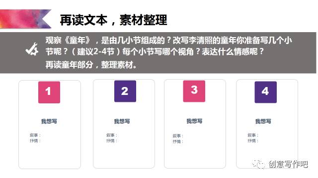引导几个重点的写作要素:内容:叙事+抒情