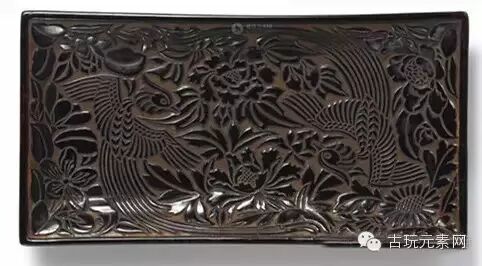 宋代的漆器,黑而无光,颜色与木炭相差无几,木纹也深深印入漆里,器物上有细碎段纹,好像人手上的纹路,又称之为牛毛纹。如果漆器上有这种纹路,可以断定年代久远。明代的漆器,表面略有光泽,段纹有蛇腹、手皴两种。