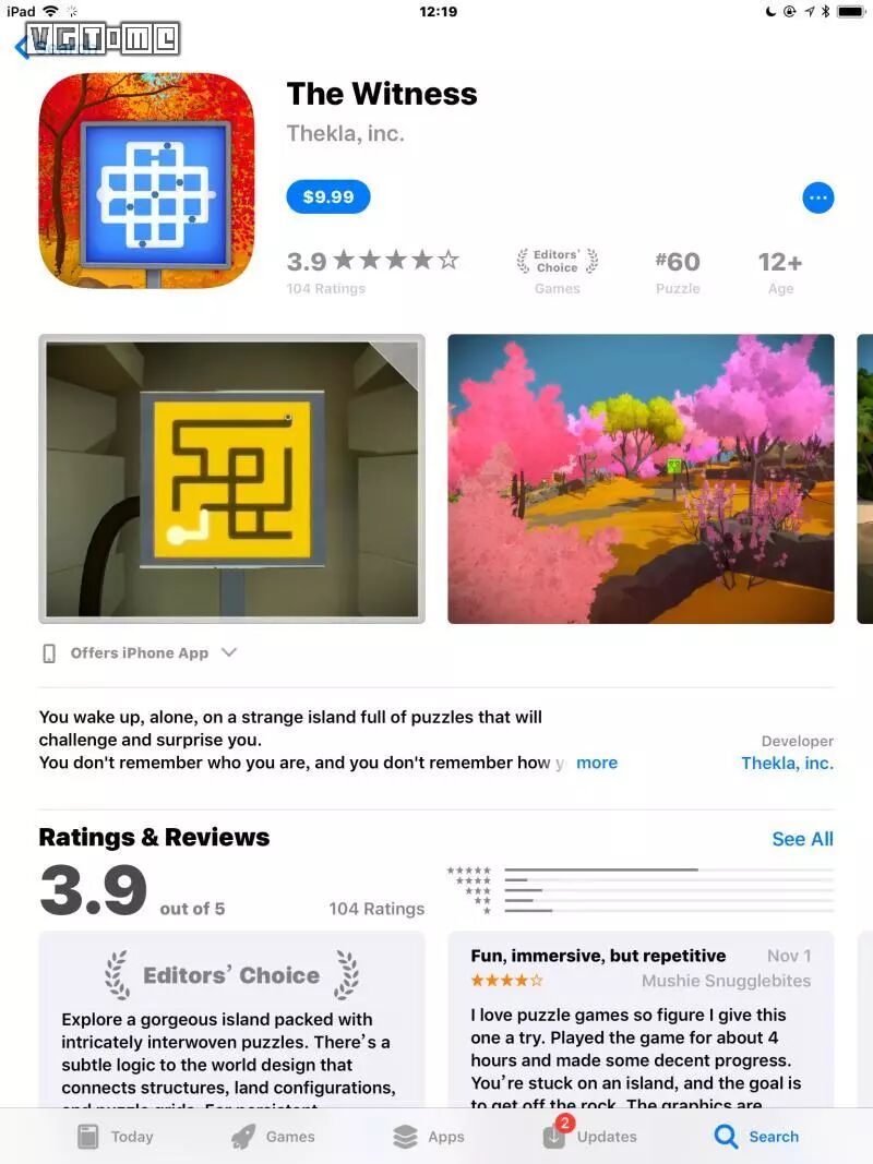 在很多人的认识中,《见证者》是一款解谜性质的游戏。这款解谜游戏在推出的短短一年多的时间里创造了不少奇迹,不仅在2016年收获了诸多赞誉和媒体的满分推荐,还在去年年末登陆iOS平台之后,被评为了App Store(美服)的2017最佳iPad游戏。记得不少玩家在直播和Steam社区评论里都开玩笑说,“游戏的谜题多么适合移动平台,滑动、解锁,一气呵成”,如今真的登陆了移动平台,操作起来还真的十分舒适自然。