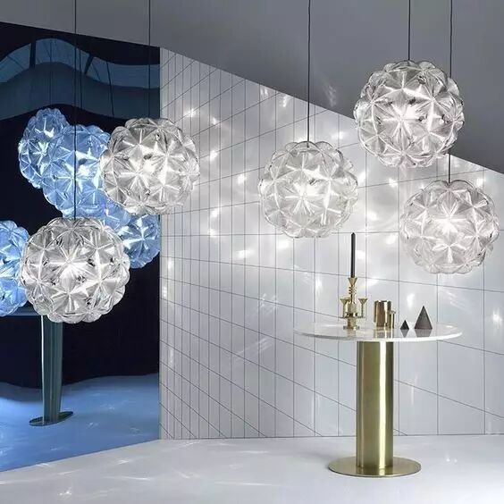 Mirror Ball系列灵感源自太空宇航员的头罩,充满了科技未来感。聚碳酸酯的球体上通过特殊工艺镀上薄薄的金属,镜面的金属反射着周围的图景,十分璀璨。光线在内外延伸,空间也内外交融。