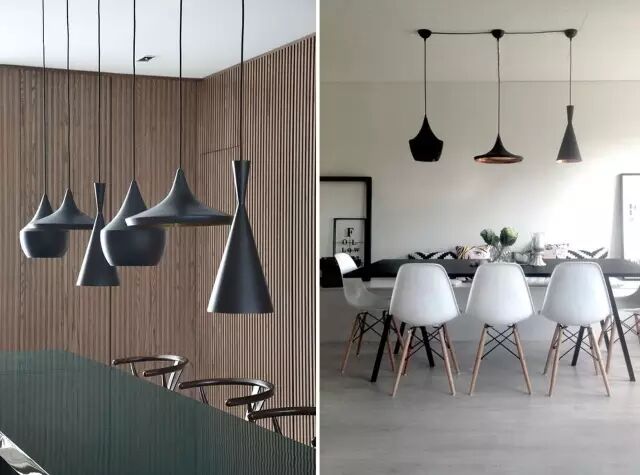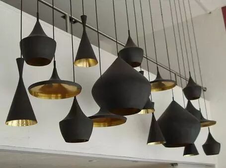 这个品牌的灯饰又分为很多系列。Beat Lights系列是Tom Dixon家的经典系列,黑色的外面冷酷沉寂,而内表的金属色反射灯光呈现出低调的奢华。这个系列的设计灵感来源与印度人头顶的盛水容器。