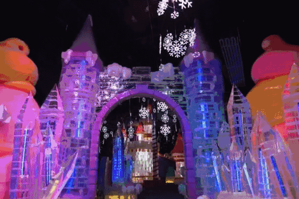 冰雪王国”是一个完全由冰雪制作而成的、占地15000平方英尺的冰封奇境。所有景观全部由国际冰雕大师团队们用超过200万磅的冰块打造出来。届时,彩冰、炫酷灯光相互辉映,必将为现场冰雕增添一缕五彩缤纷的亮色。