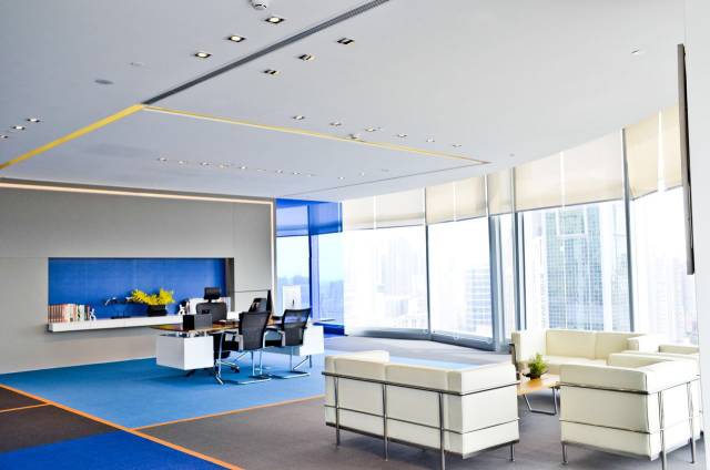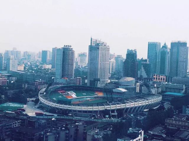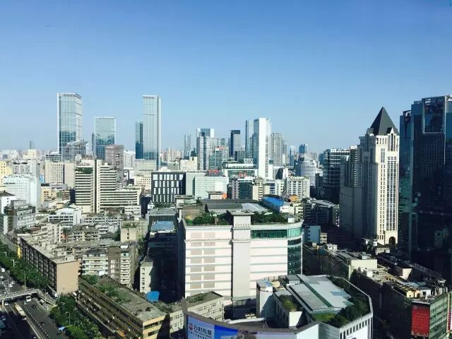 其次,比起在体育馆里大汗淋漓地去蒸包子,在SAC这里二十四小时都可以开着约克四管制VAV可调节变风量中央空调,各种清风徐来的感受。相对其他周边的高楼,此处的视野明显更为开阔,2.4米高落地玻璃四面通透,整个成都中心区域尽收眼底,全无死角。