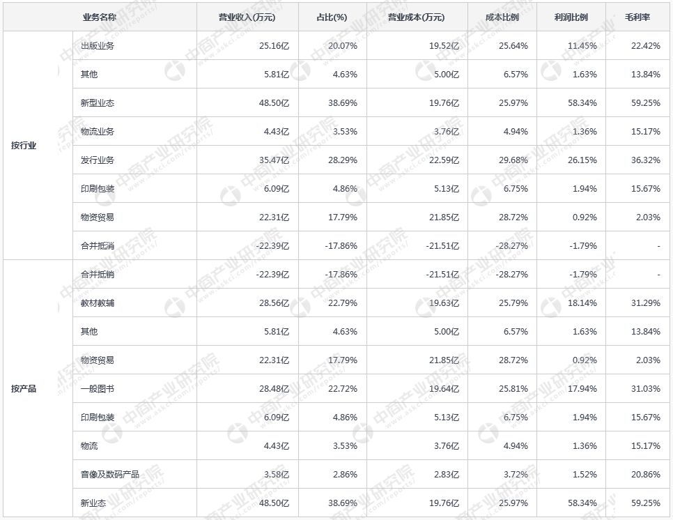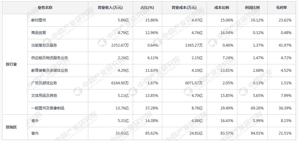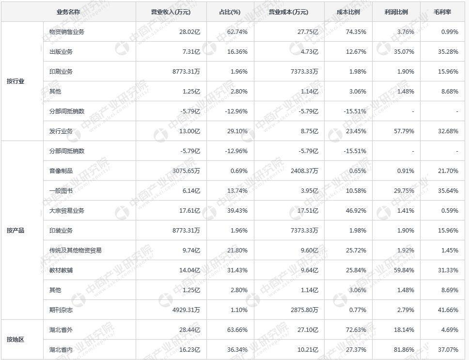 皖新传媒主营业务构成情况(2017中报)