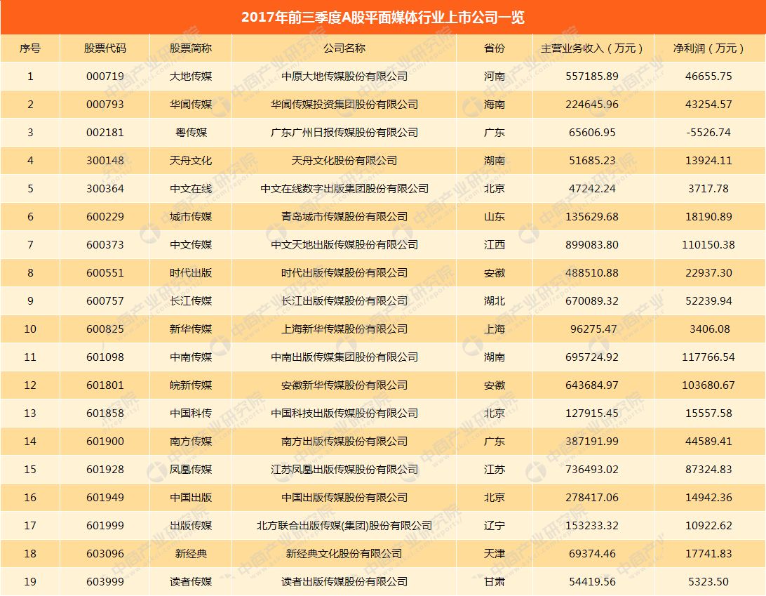 平面媒体A股上市企业经营情况