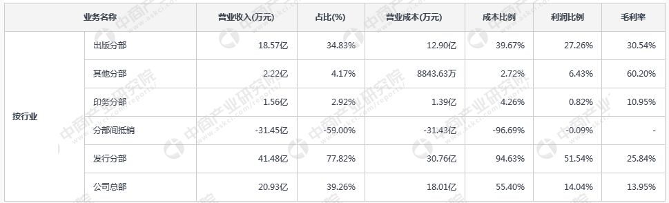 中文传媒主营业务构成情况(2016年报)